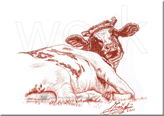van een zich likkende oude roodbonte koe